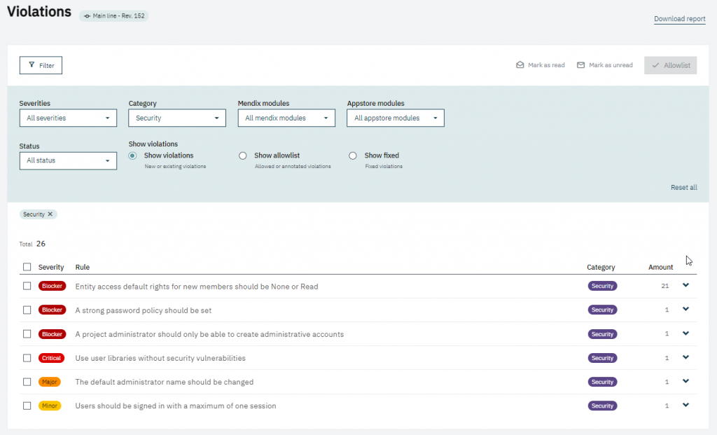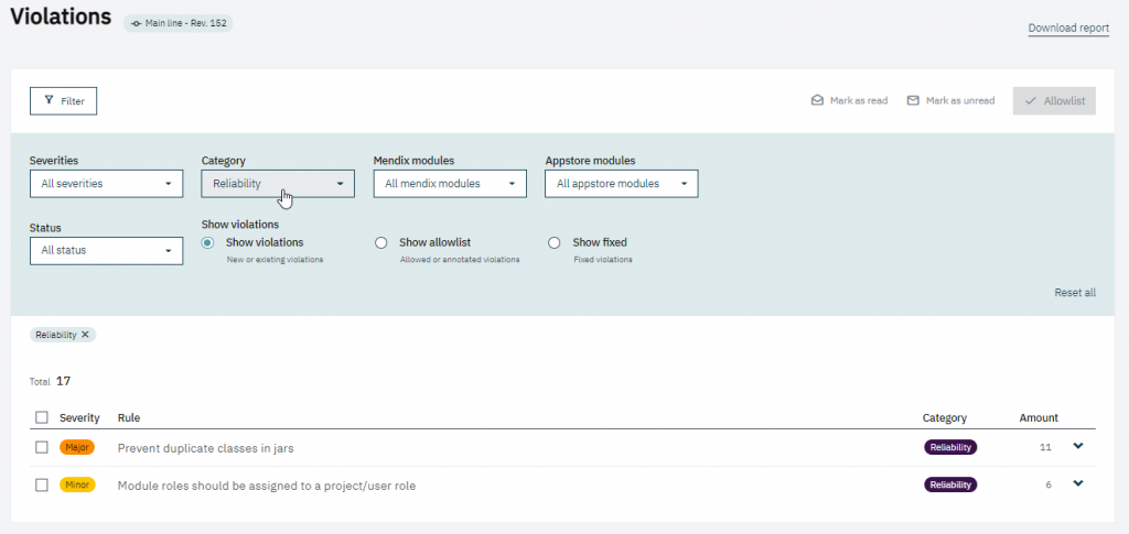 ACR is a static analysis tool that scans your Mendix model and compares it against a database of rules based on Mendix best practices and other developer guidelines. It then reports when a rule is violated. These violations are grouped into categories that helps you find bugs, code smells, and security vulnerabilities.