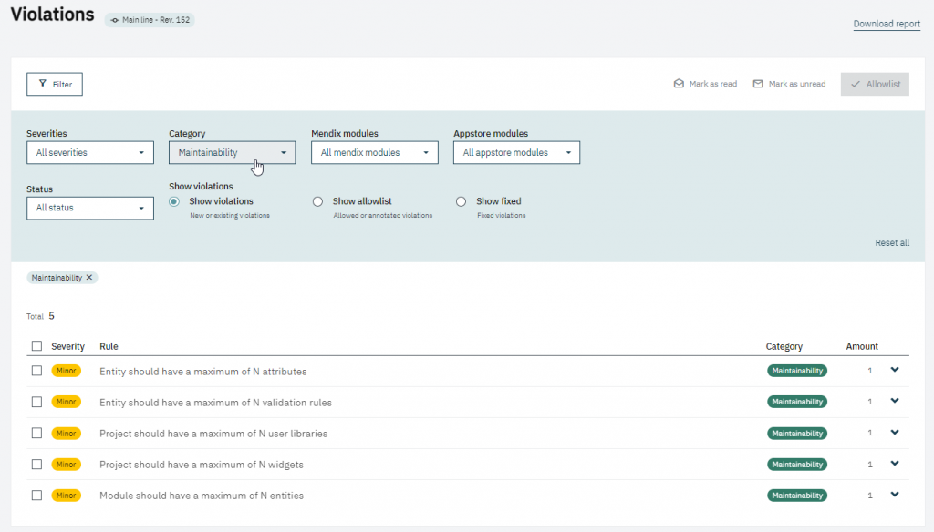 Smelly code probably does what it should, but it is hard to maintain. As new features are built, smelly code tends to develop into real issues. Violations in the Maintainability category point to different code smells such as large microflows or entities.
