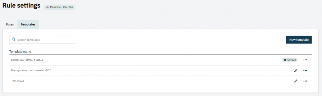 To enforce the same rules across projects a set of templates can be managed: